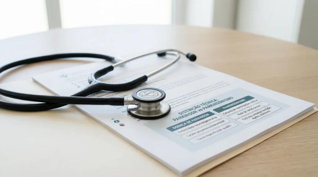 É imprescindível estabelecer essa distinção desde o início, sob pena de comprometer toda a análise do caso. O Parkinsonismo não constitui uma doença específica, mas sim um conjunto de manifestações clínicas, especialmente a lentidão dos movimentos, a rigidez muscular e os tremores. Já a Doença de Parkinson, por sua vez, é uma enfermidade neurodegenerativa própria, de caráter progressivo e irreversível, sendo a principal causa desse quadro sintomático.